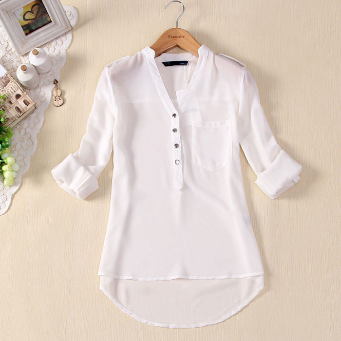 1PC Women Spring Summer V-Neck Chiffon Long Sleeve Casual Shirt Blouse