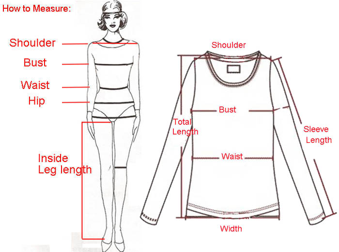NOTE: Please compare the detail sizes with yours before you buy!!! Use similar clothing to compare with the size.