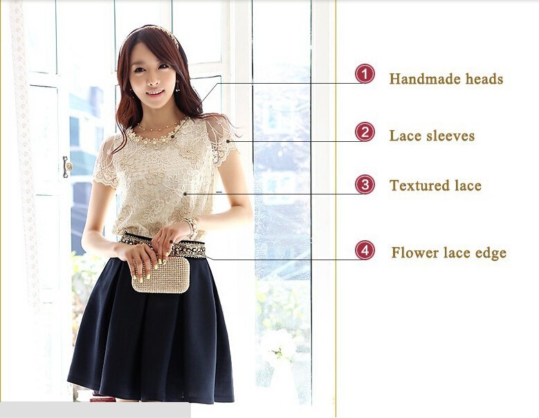 2014 summer lace short-sleeve shirt embroidery lace beading shirt short-sleeve chiffon shirt 8423