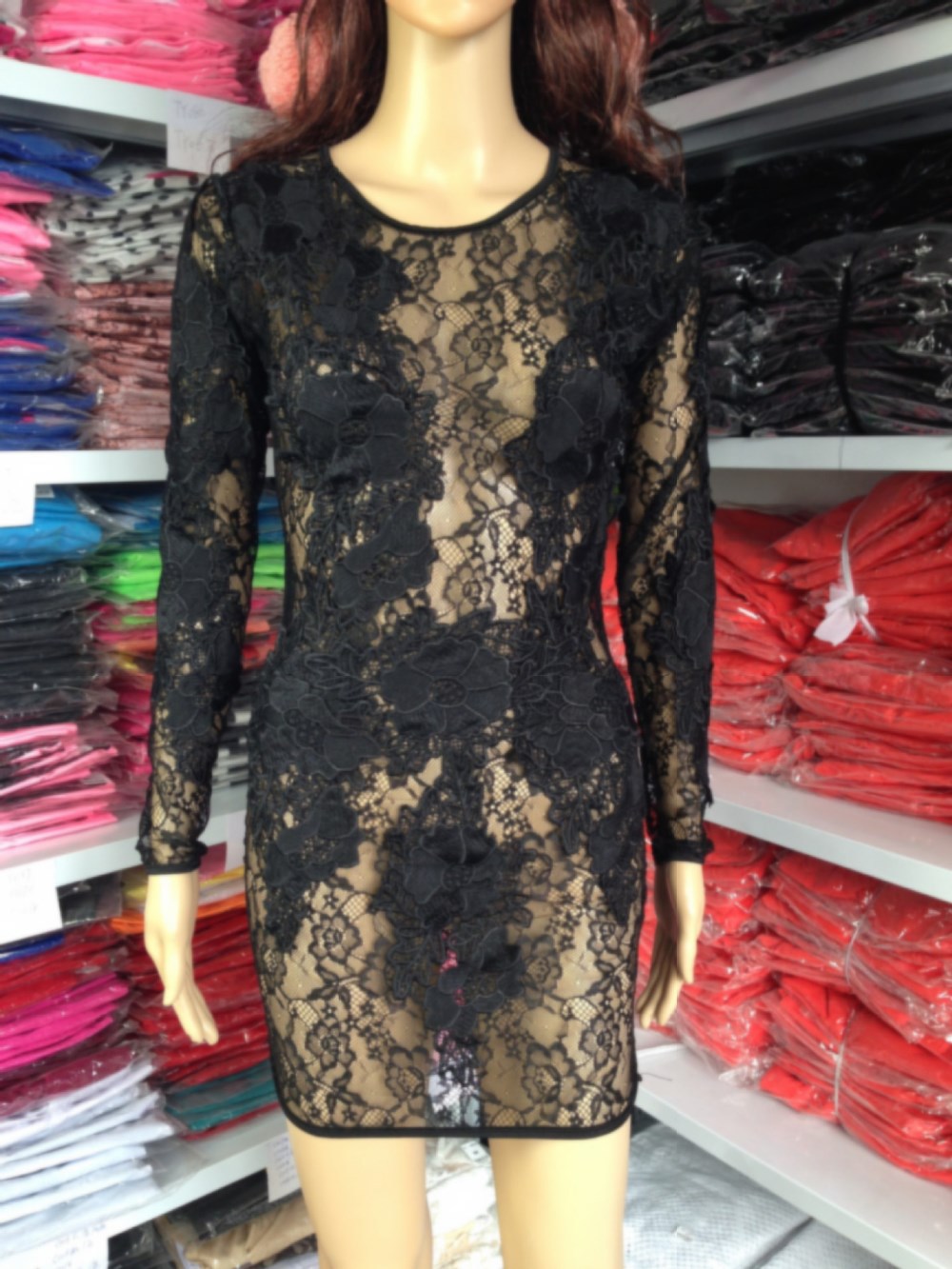 2015 Sexy Club Dress Womens Mini Bodycon Dress Party Bandage Dresses Long Sleeves Bodysuit Lace patchwork see through Dress