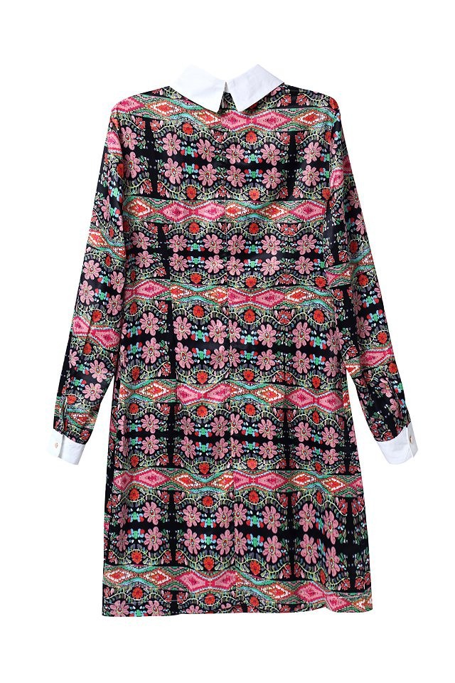 Autumn Dress And Long Sleeve Dress Women For Chiffon Dress Flower Printed Turn-down Collar dress free shipping