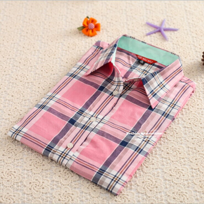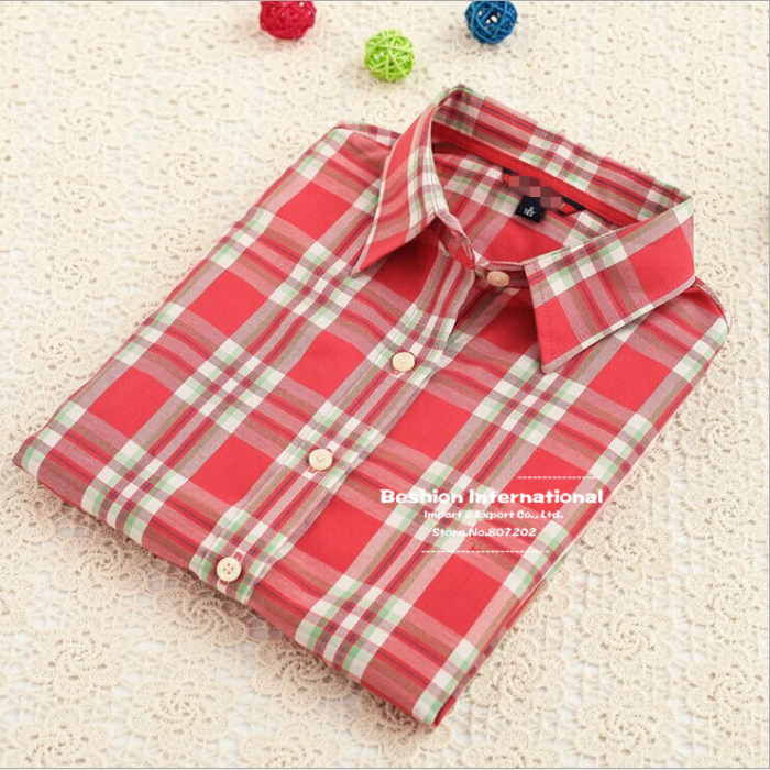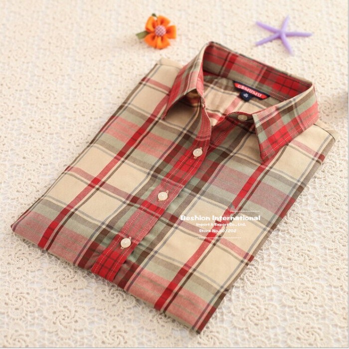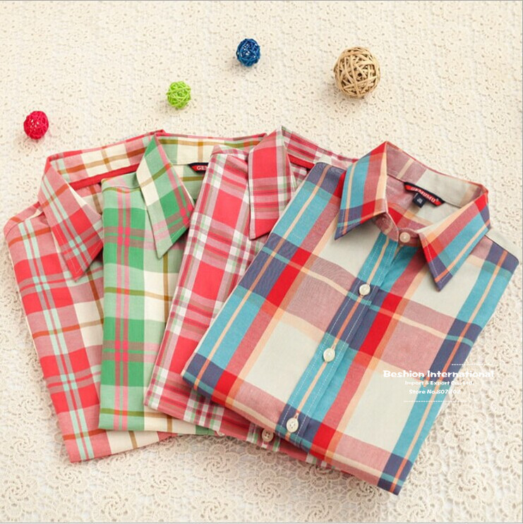 High Quality fashion tops blouse for women blouse Colorful Long Sleeve Cotton shirt ladies plus size plaid women shirt