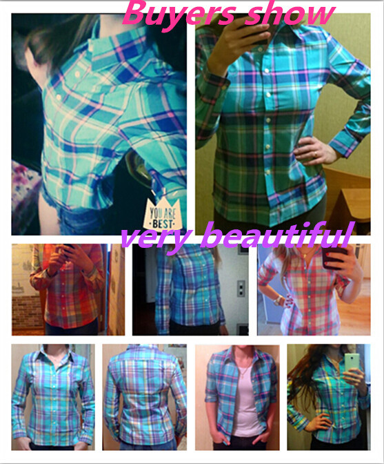 HOT 2014 winter long sleeve, collar, plaid women shirt, small and fresh, women pure cotton shirt’s,S-XL,Free shipping