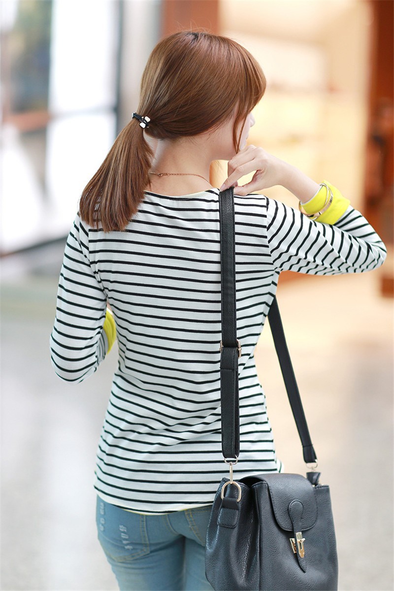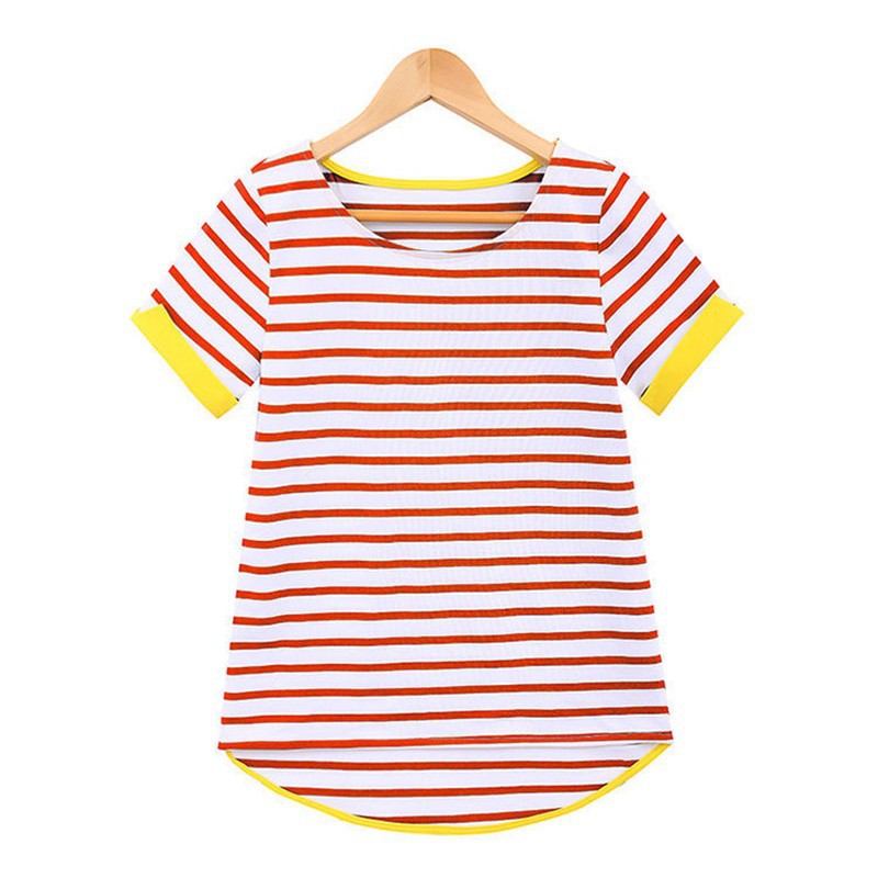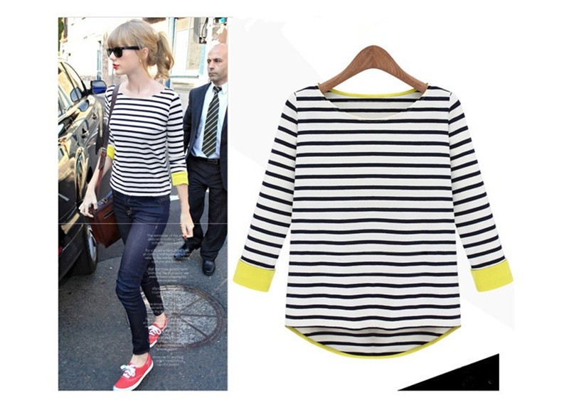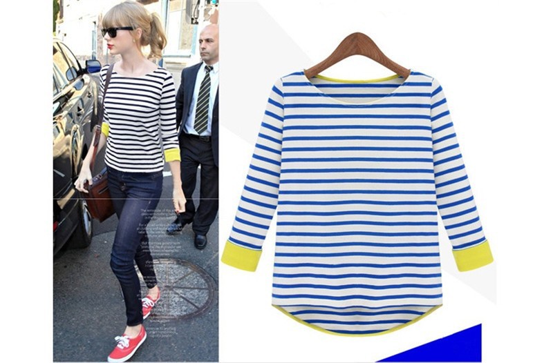 Hot Striped Female Shirts Long Sleeve Short Sleeve O-Neck Big Brand Style Black/Red/Blue Popular Lady Shirts Blouses Tops E5200