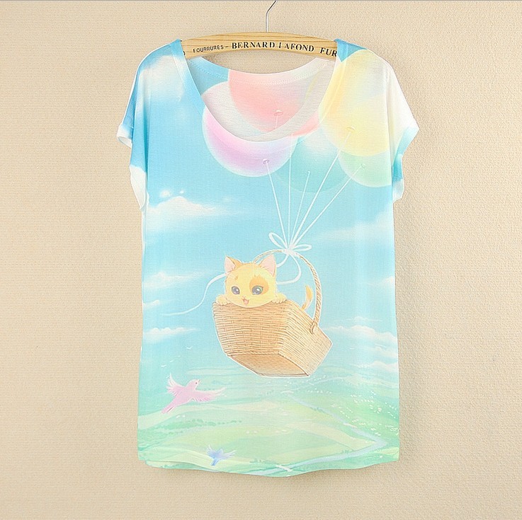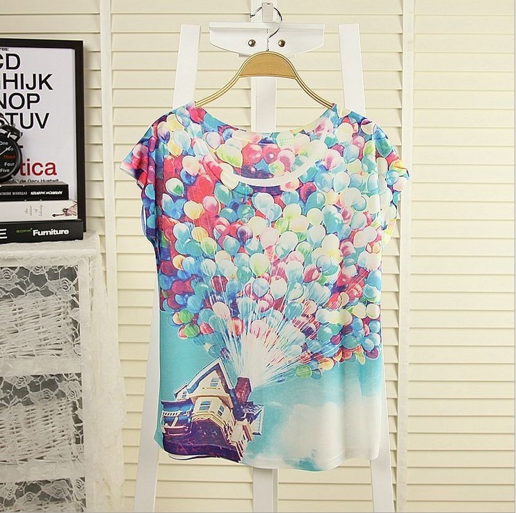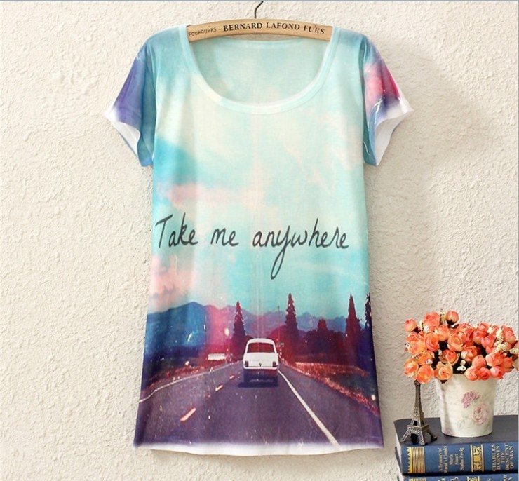 New 2015 summer t shirt women Tee Shirts style thin plus size short sleeve women’s t-shirt sea wind sceneryprint Tops Tees U9466