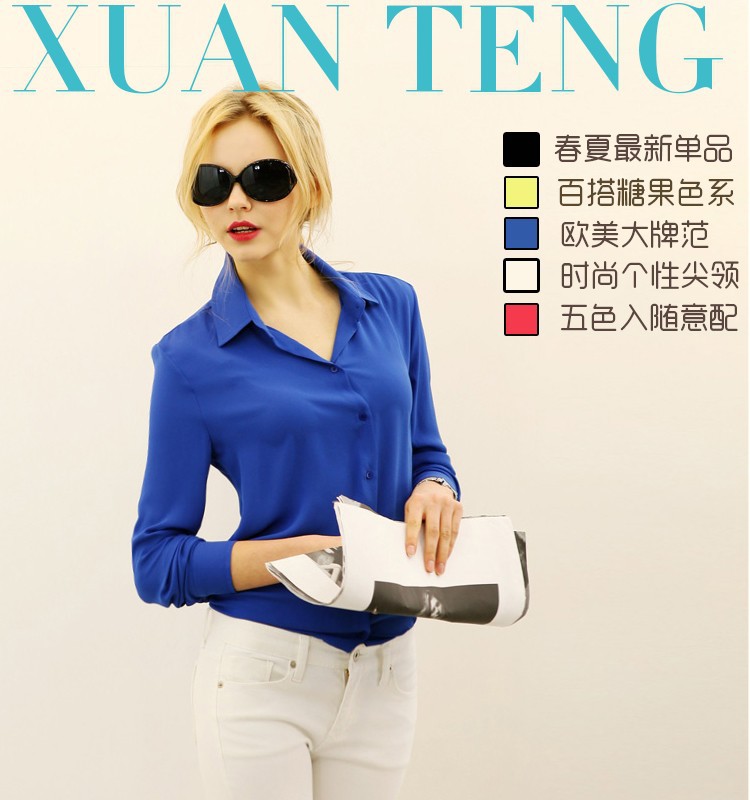 S-XXL New 2014 Autumn Roupas Femininas Camisas Brand Fashion Women Shirt Loose Solid Plus Size Chiffon Blouses Drop Shipping