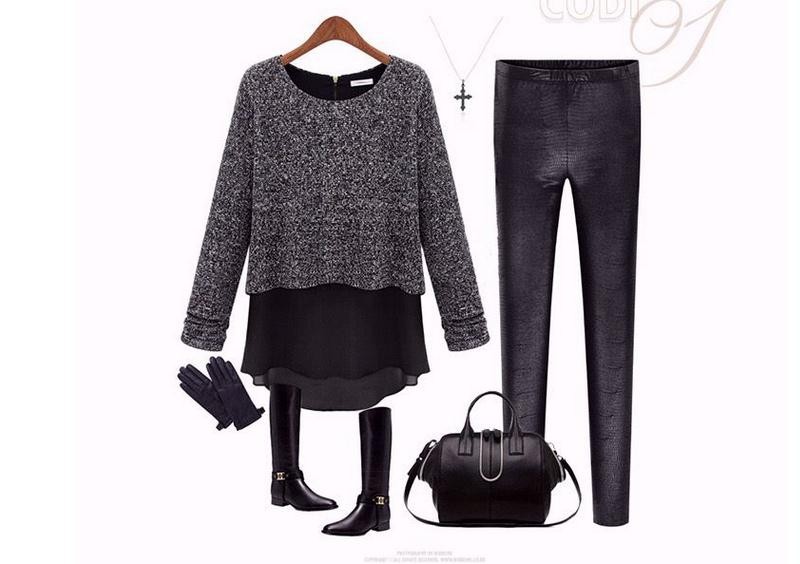 Spot 2014 Hitz European and American round neck long-sleeved sweater stitching chiffon fake two T -shirts